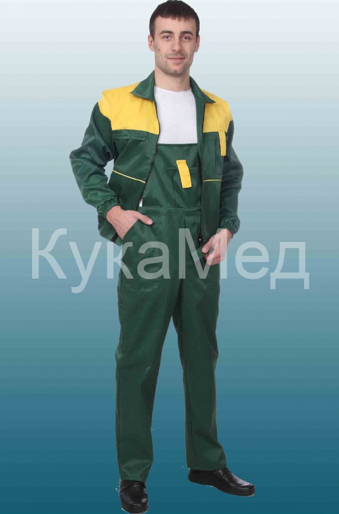 Полукомбинезон с нагрудным, боковыми карманами и задним карманом под инструмент.