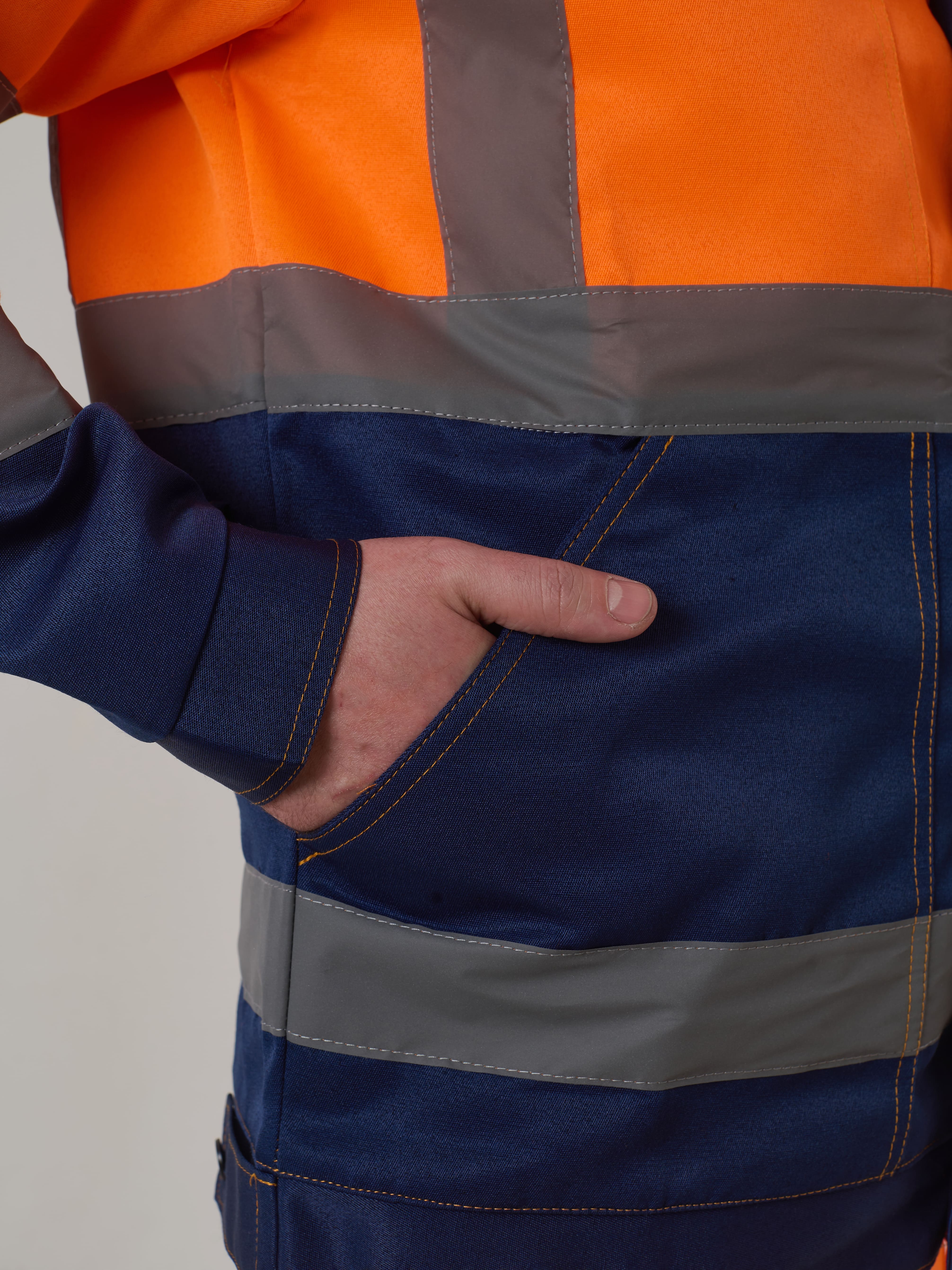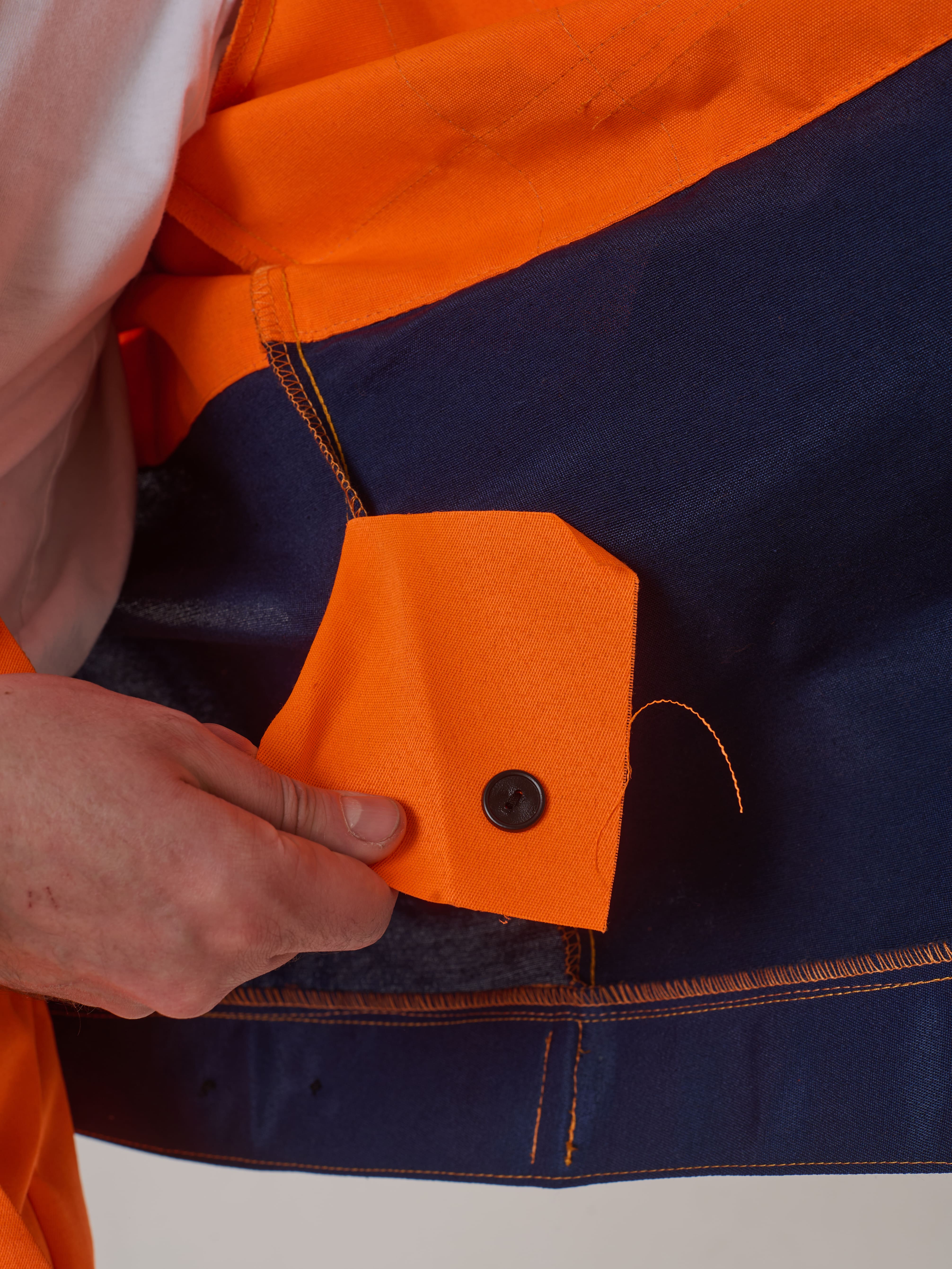 Полукомбинезон с отрезной грудкой, с накладным карманом. Две линии СОП-50 мм, ниже коленей