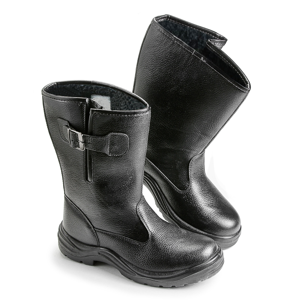 Описание: Кожаные сапоги дополнены ремнем с металлической пряжкой для возможности регулировать и комфортно фиксировать ширину голенища. Подкладка и вкладная стелька изготовлены из искусственного меха. Светоотражающие элементы повышают видимость работников в темное время суток, а также на неосвещенной территории. Однослойная маслобензостойкая полиуретановая подошва литьевого метода крепления имеет вставку в пяточной части подошвы, обладающую амортизационными свойствами и способную гасить ударные нагрузки при ходьбе. Глубина протектора ходового слоя обеспечивает хорошую сцепляемость с поверхностями и препятствует скольжению за счет рельефа протектора.