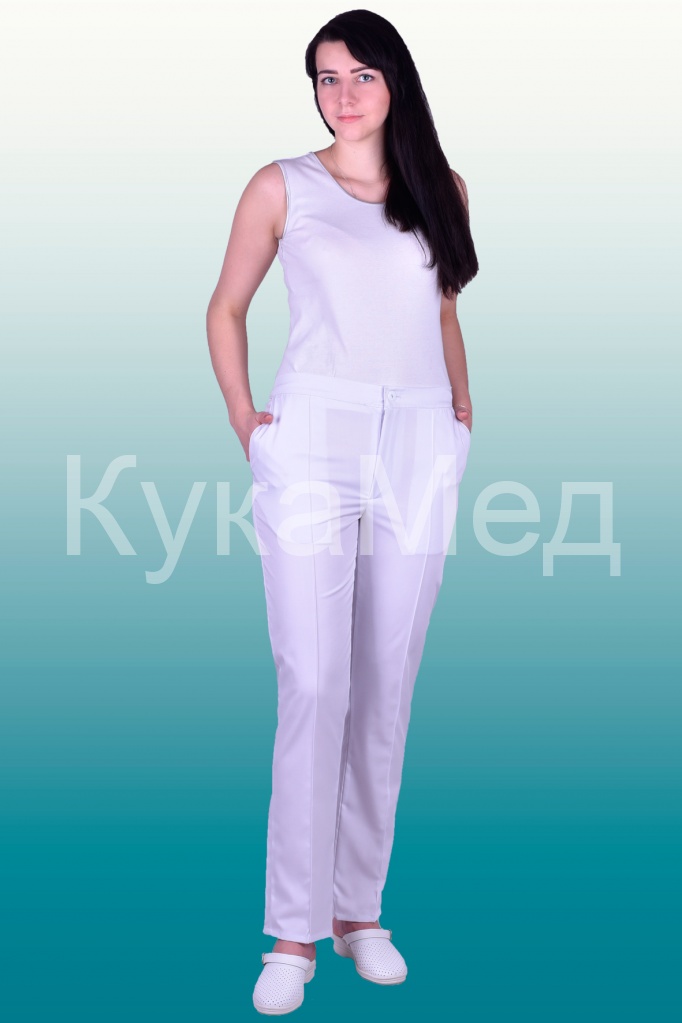 Брюки на поясе а резинке, внутрение карманы, гульфик на молнии, отстроченные стрелки.