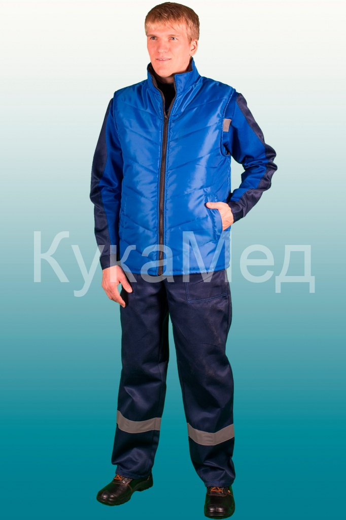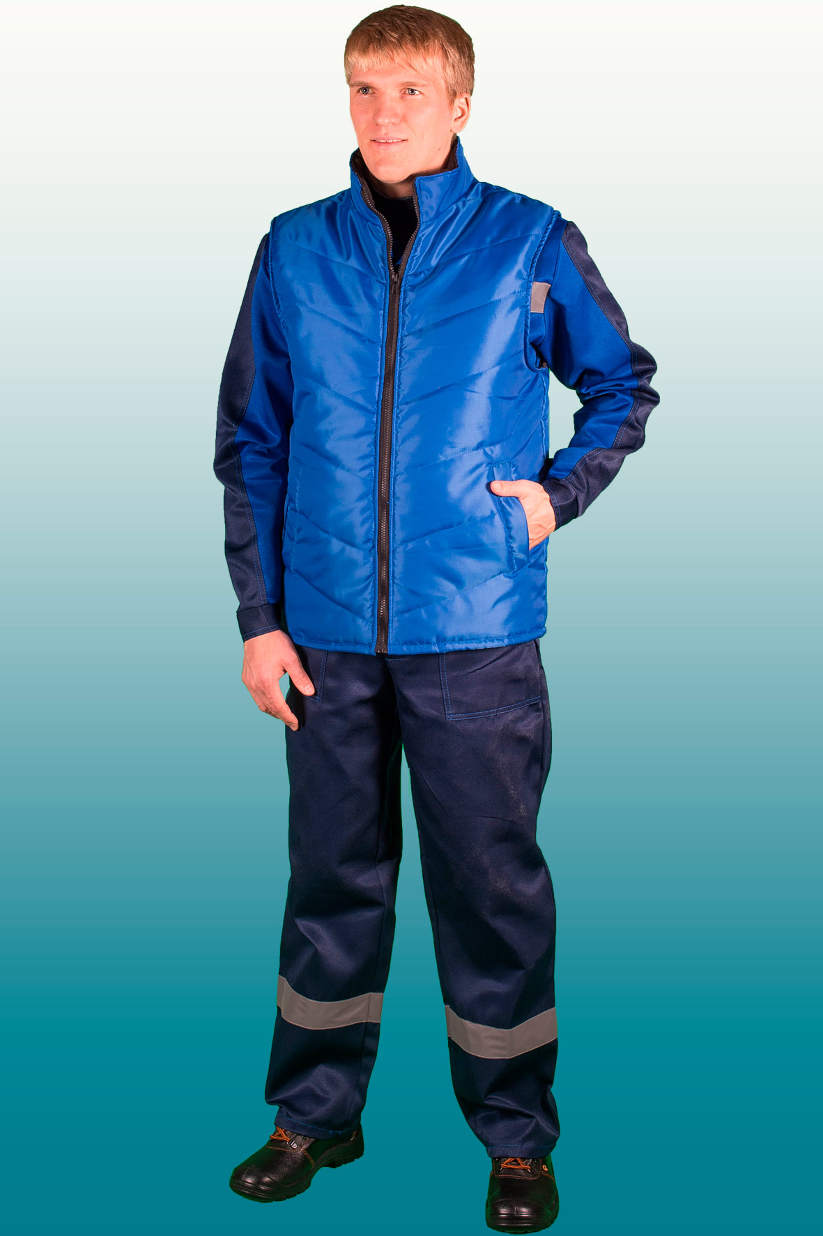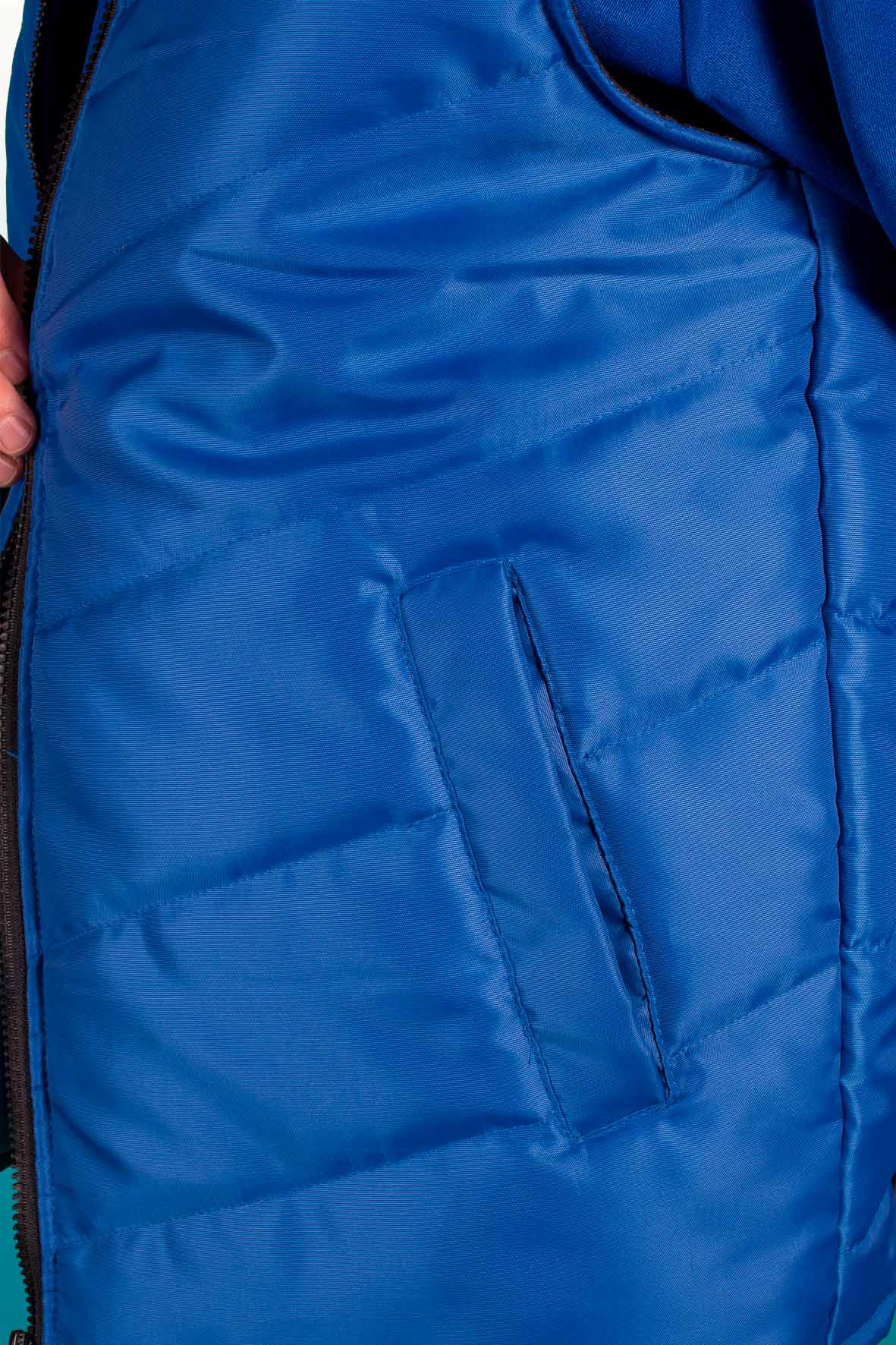Описание: Жилет прямого силуэта, с притачной утепленной подкладкой, центральной застежкой на тесьму-молнию, двумя нижними боковыми прорезными карманами с листочкой, воротником-стойкой.