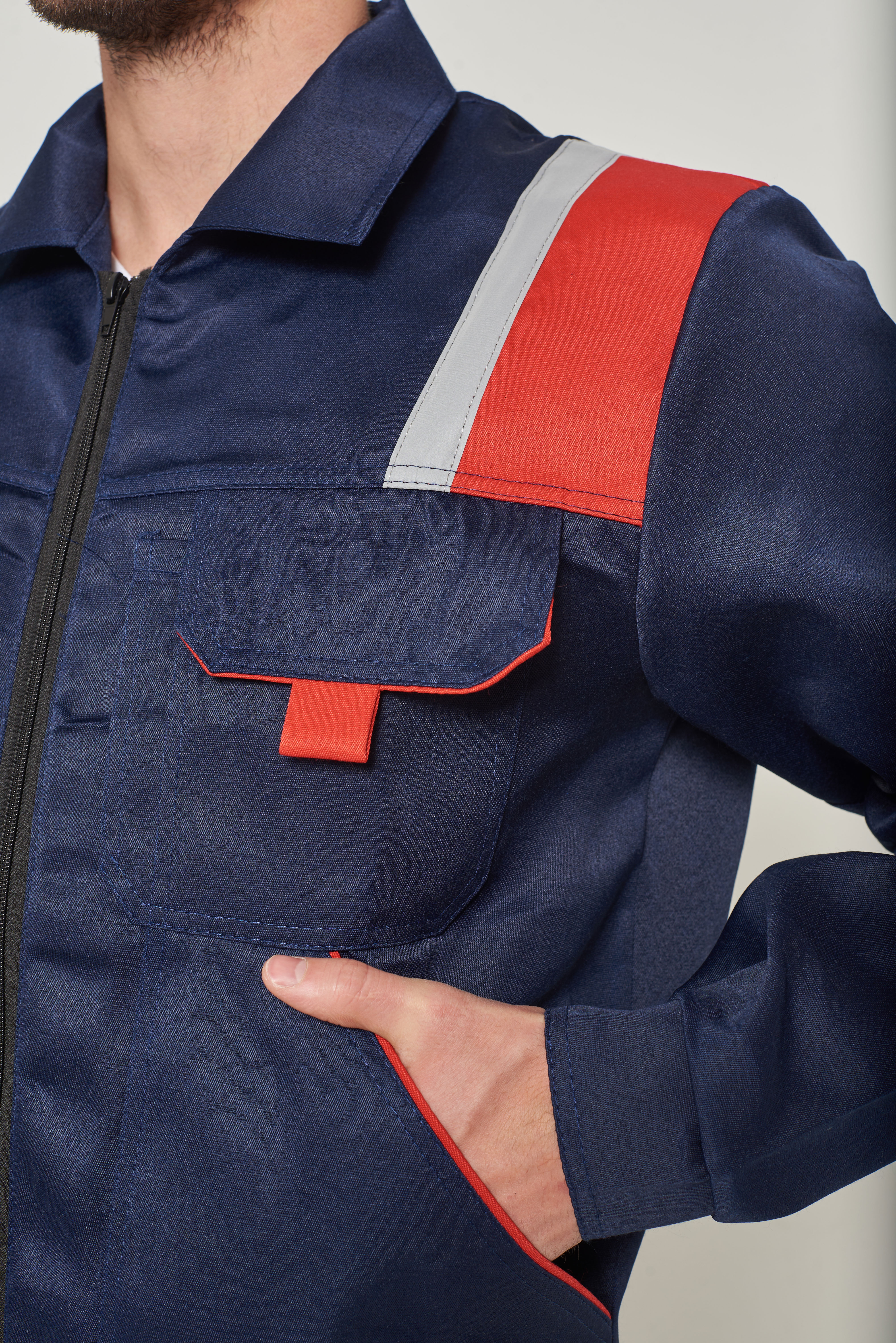Два боковых кармана, два нагрудных.Кокетка с контрастной отделкой и СОП 25 мм.
