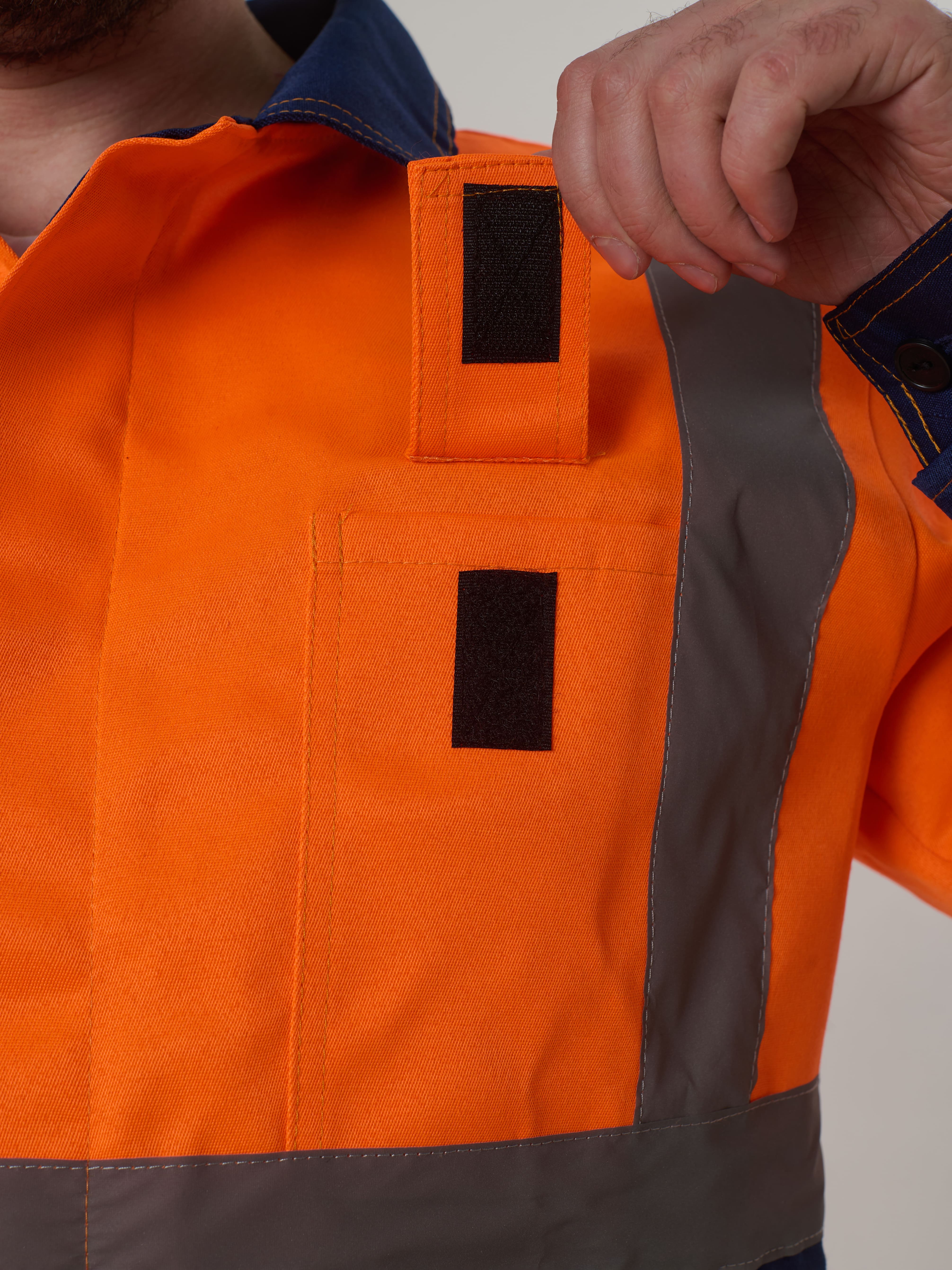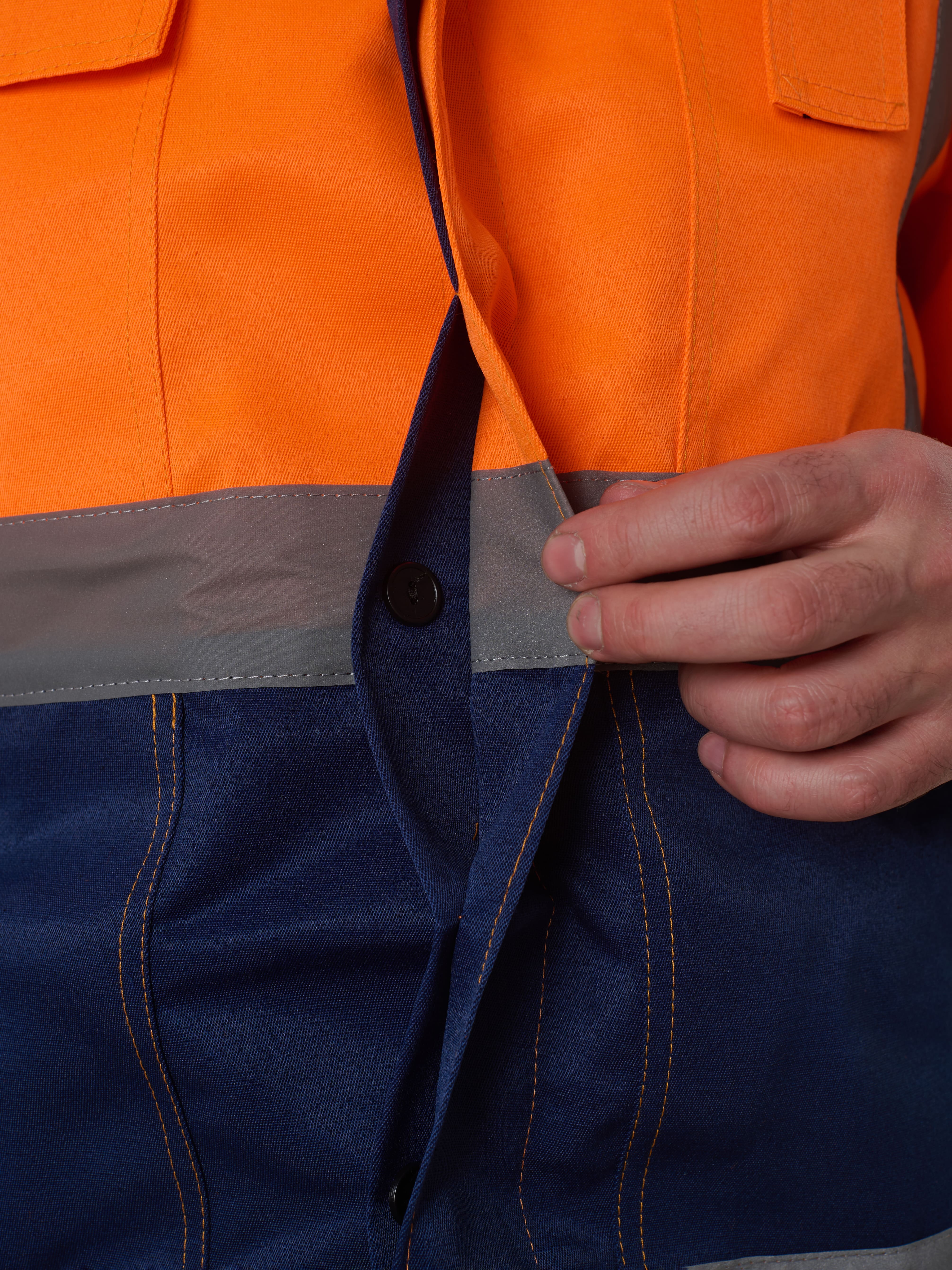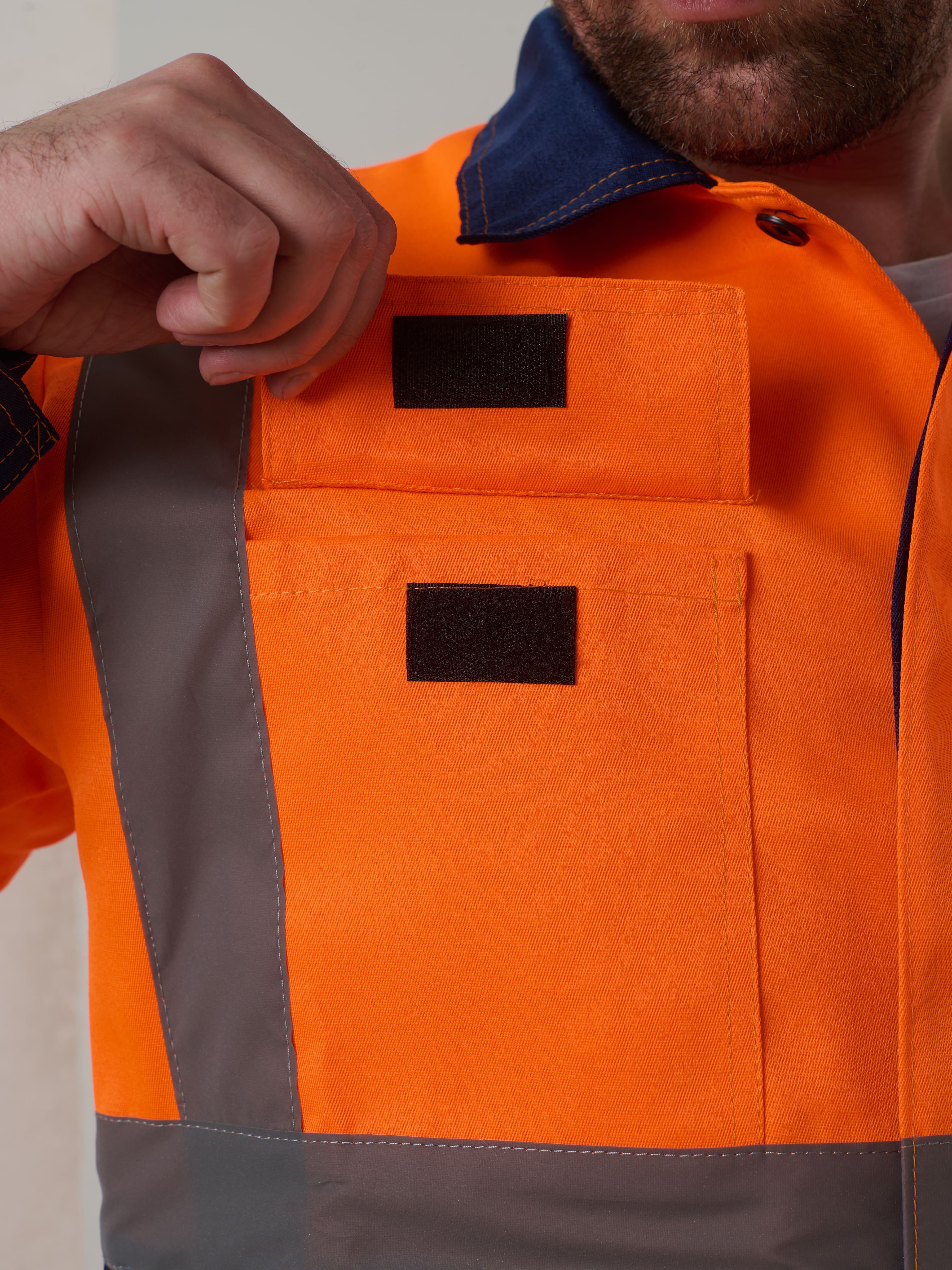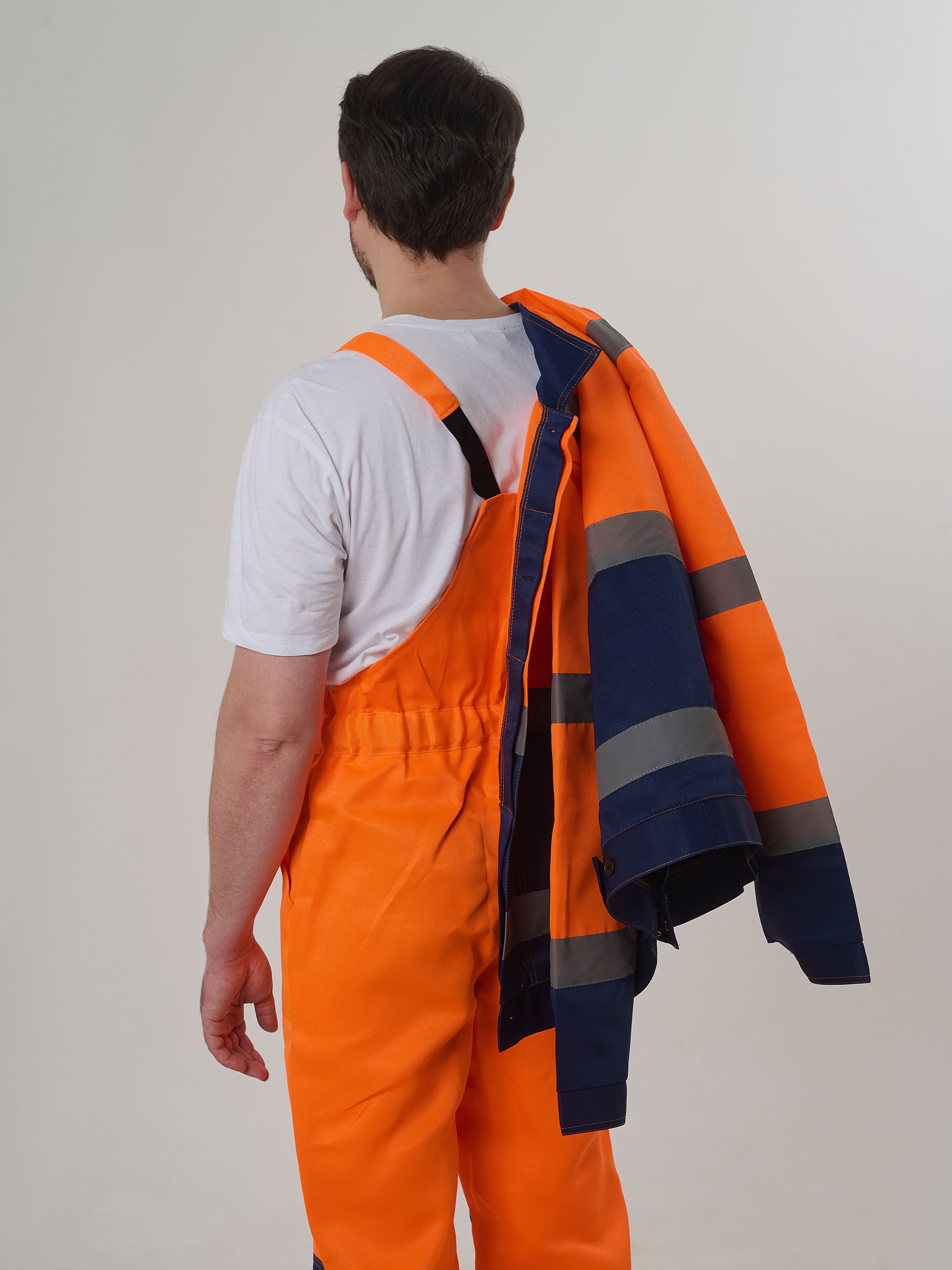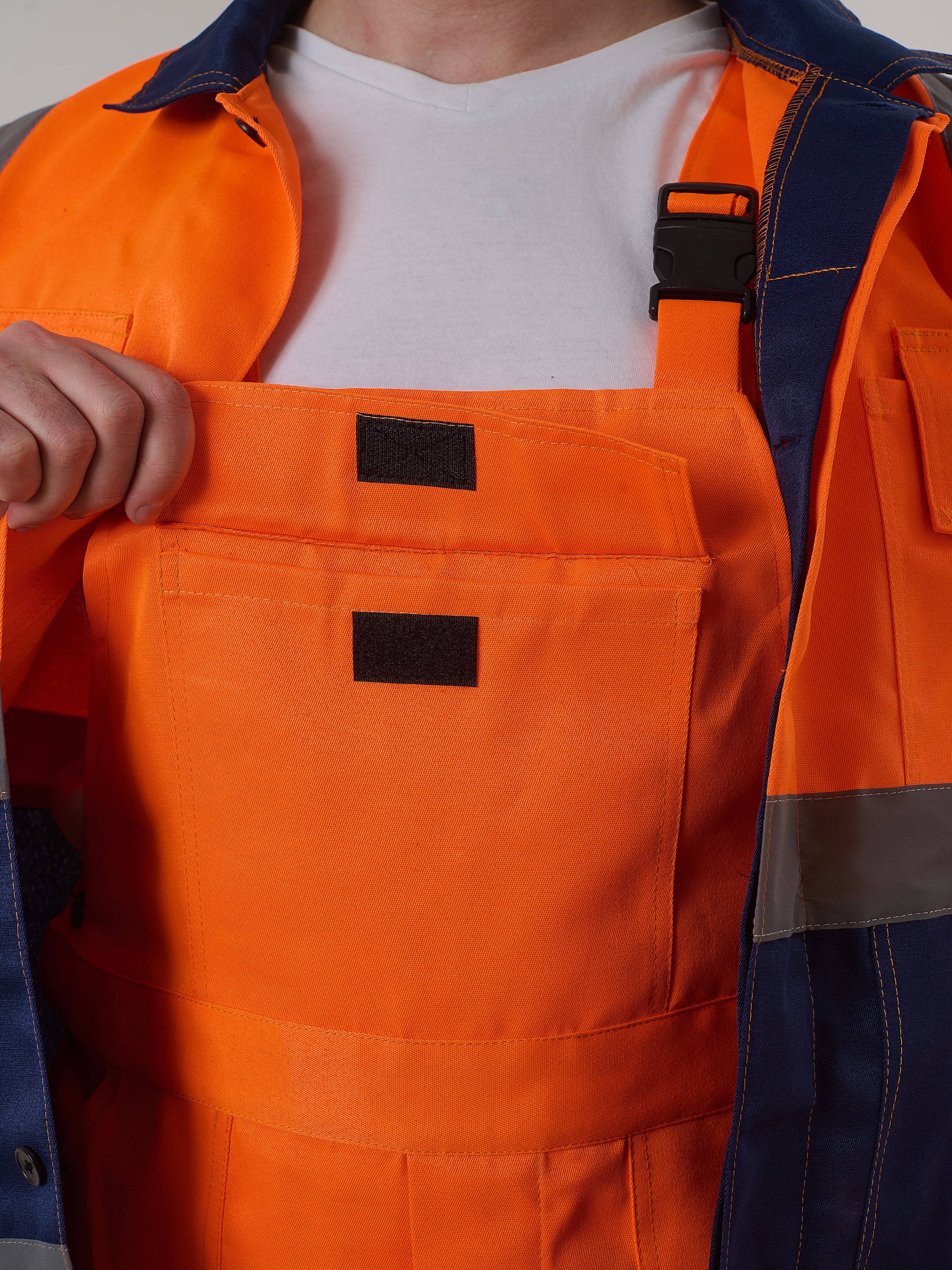 Полукомбинезон с отрезной грудкой, с накладным карманом. Две линии СОП-50 мм, ниже коленей