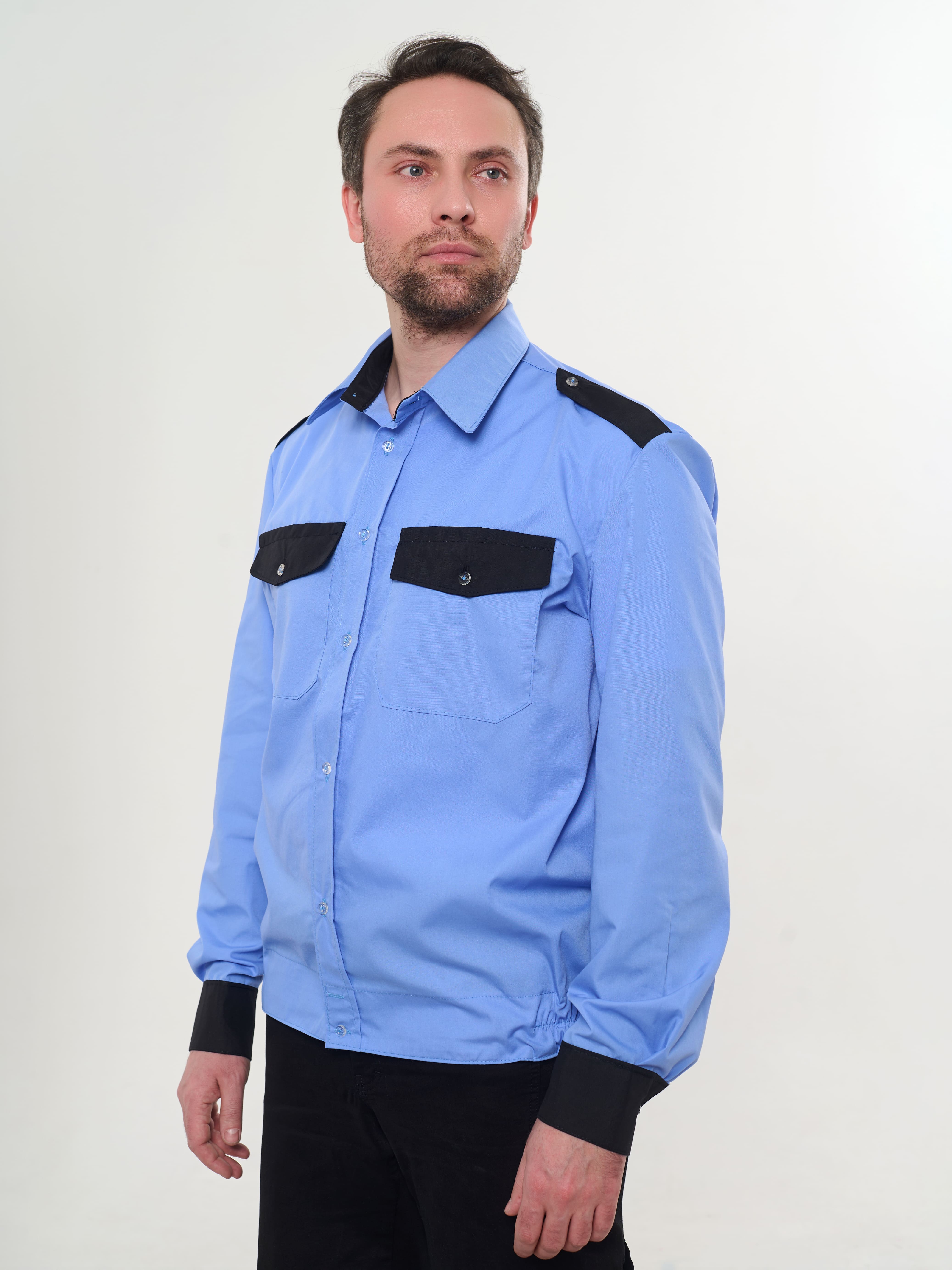 Описание: Мужская рубашка охранника с длиным рукавом на пуговицах. Пояс на резинке.