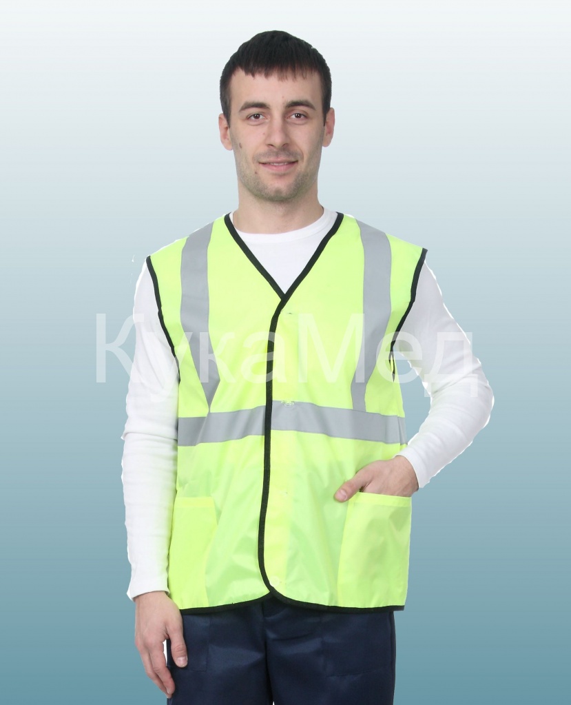 Свето-возвращающие полосы шириной 50 мм: одна горизонтальная по груди, две от плечевых швов.
