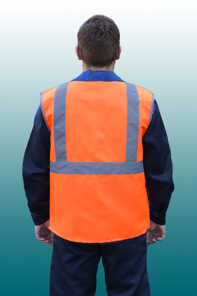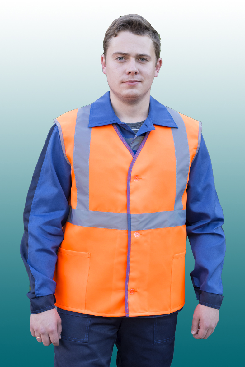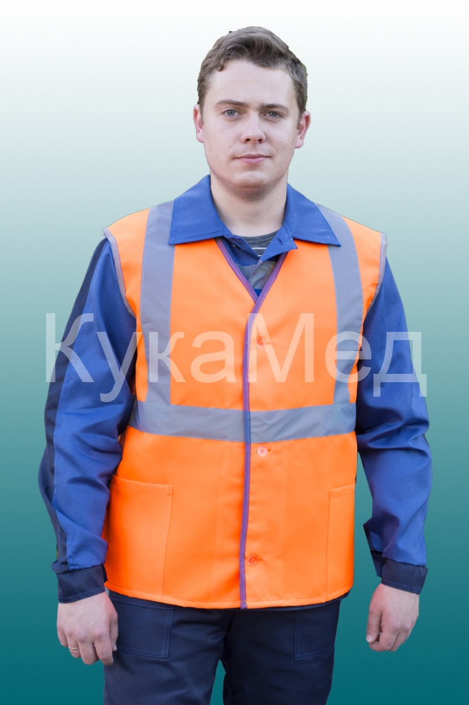Свето-возвращающие полосы шириной 50 мм: одна горизонтальная по груди, две от плечевых швов.