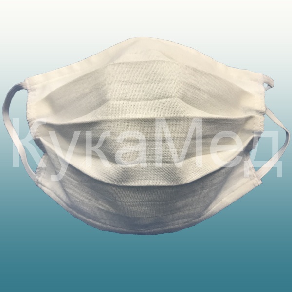 Описание: Маска тканевая многоразовая из бязи, 2 слоя, 120 гр/м2, 100% хлопок, на резинках (вязанная 4мм),цвет белый, ширина не менее 18 см, обработка краев -оверлок.