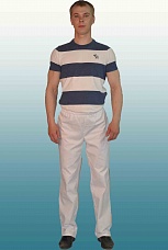 Брюки на поясе а резинке, внутрение карманы, гульфик на молнии, отстроченные стрелки.