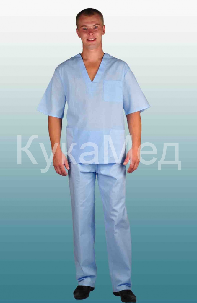 Блуза с V-образной горловиной, короткими рукавами, 3-мя накладными карманами.