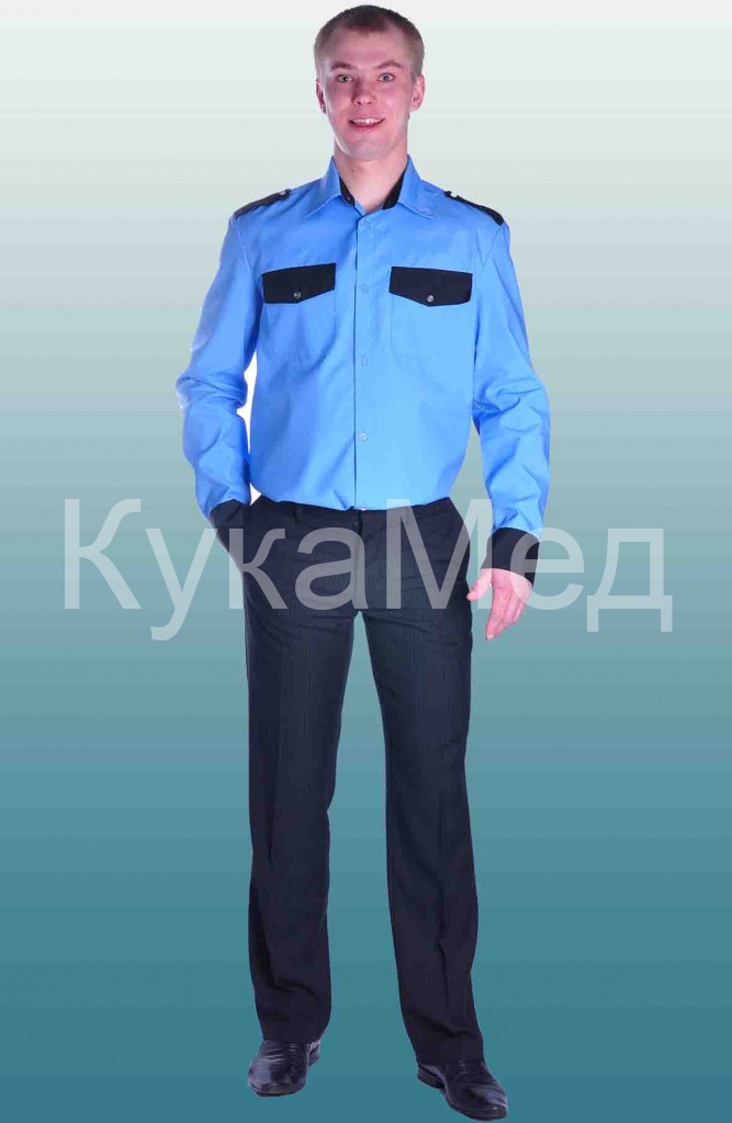 Описание: Мужская рубашка охранника с длинным рукавом на пуговицах. Манжеты, стойка на воротнике, погоны и на полочке клапаны на карманах из отделочной ткани размеры по вороту с 37 по 48