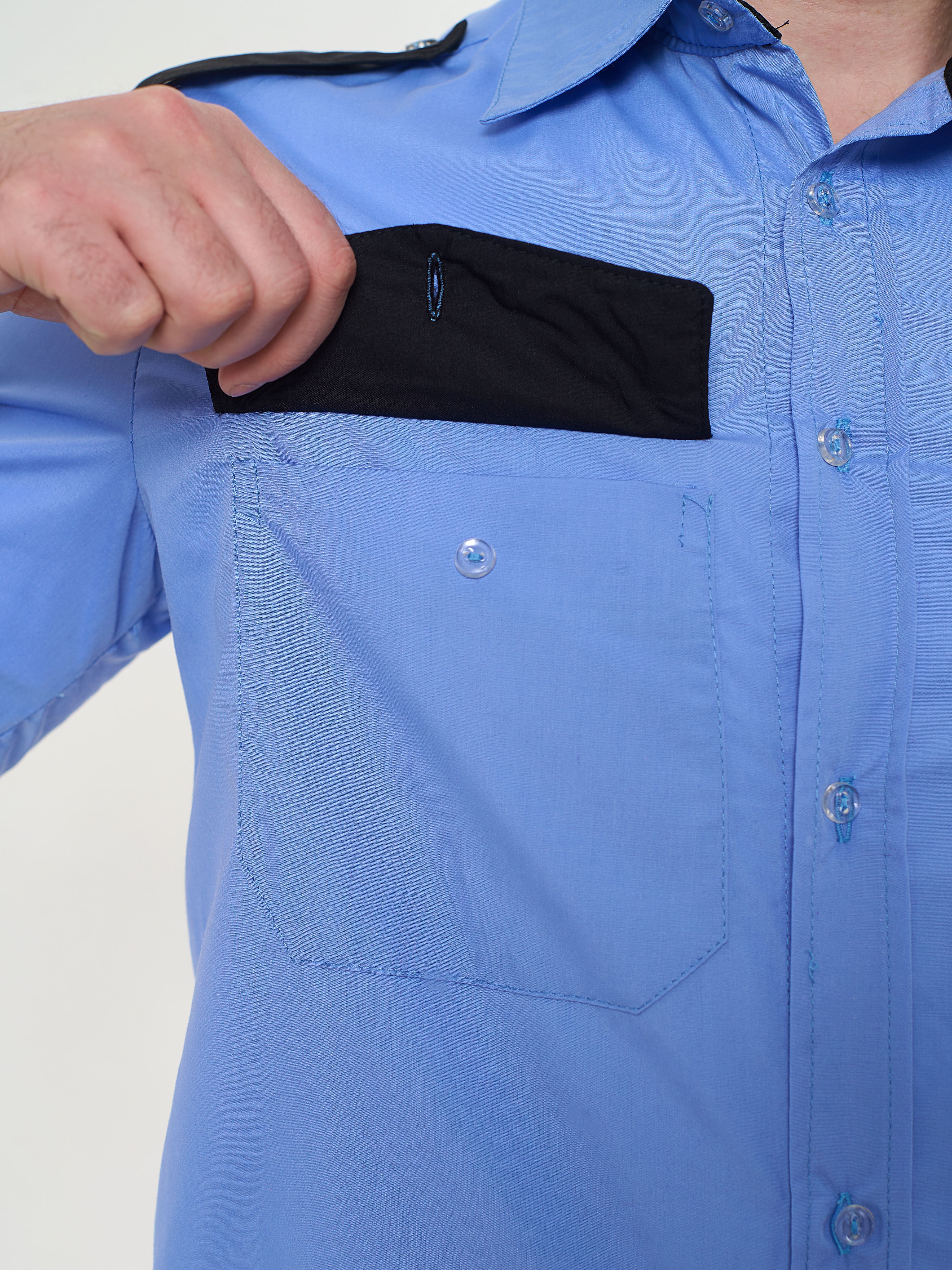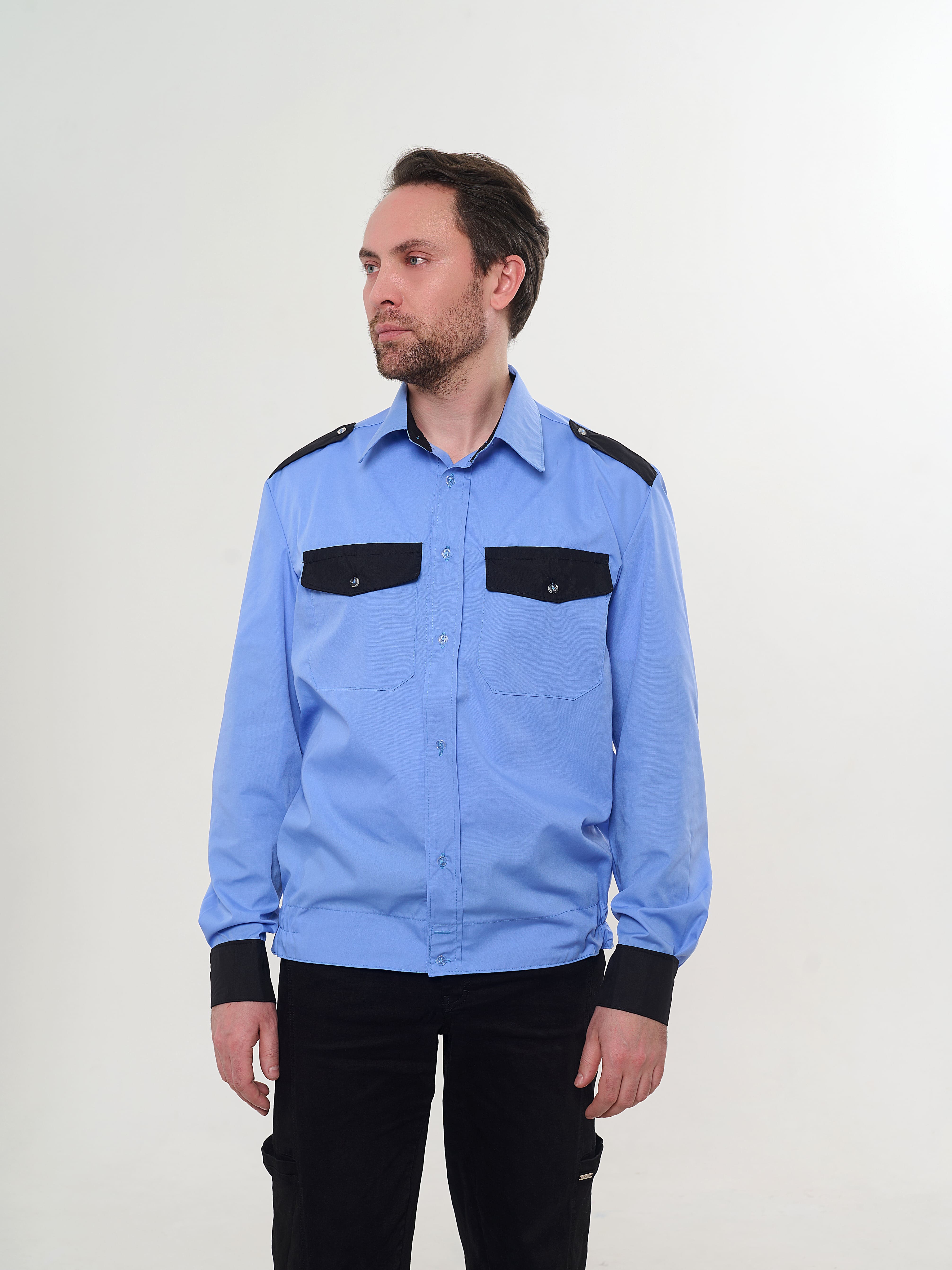 Описание: Мужская рубашка охранника с длиным рукавом на пуговицах. Пояс на резинке.